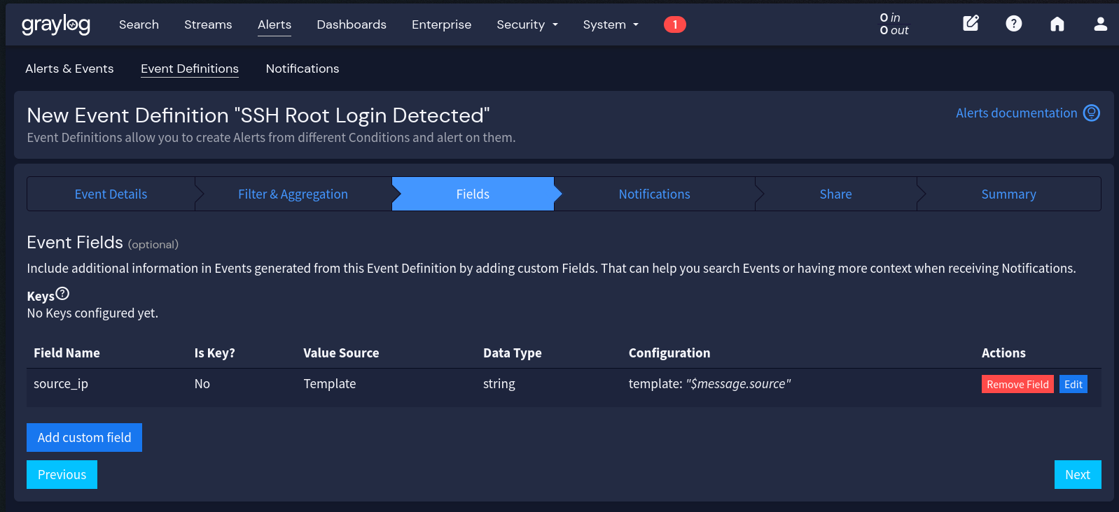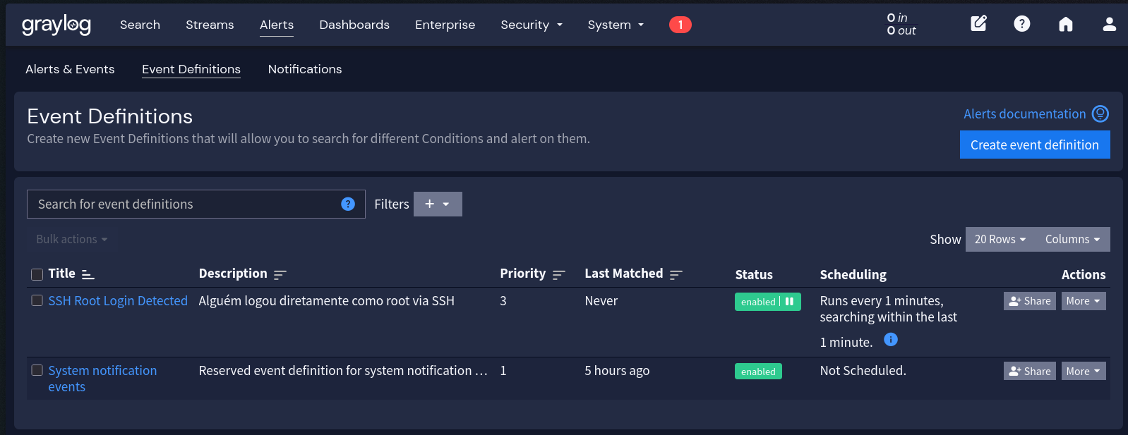 - Alerts > Event Definitions