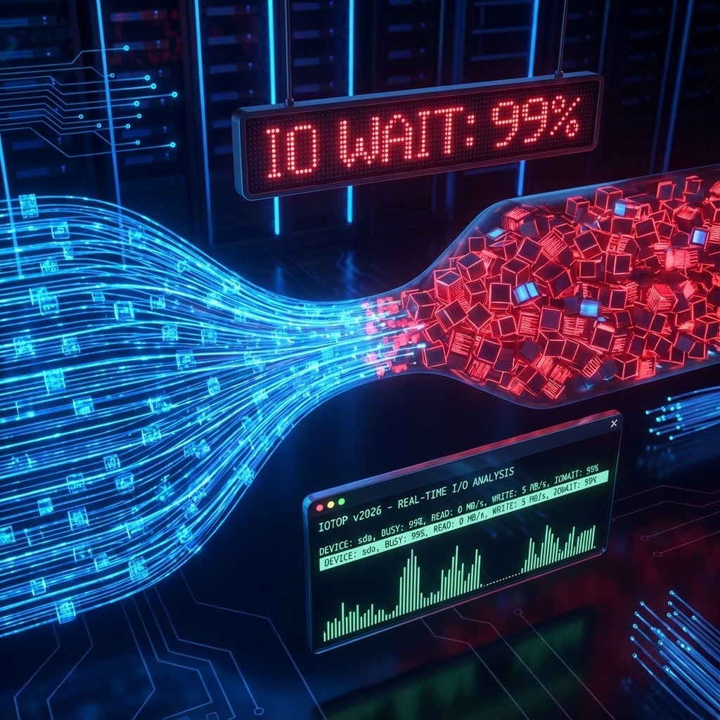 O iotop te ajuda a ver se você está batendo nesse teto. Às vezes, um log de erro mal configurado escrevendo 1GB de texto inútil por minuto é o suficiente pra travar uma instância pequena, mesmo com SSD.